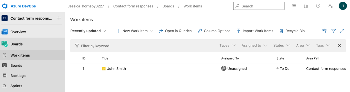 ● คลิกไปที่ช่องกรอกของ “Organization Name” field แล้วเลือก organization name ตามภาพ (ตัวอย่างของผมตั้งเป็น JessicaThornby0227)