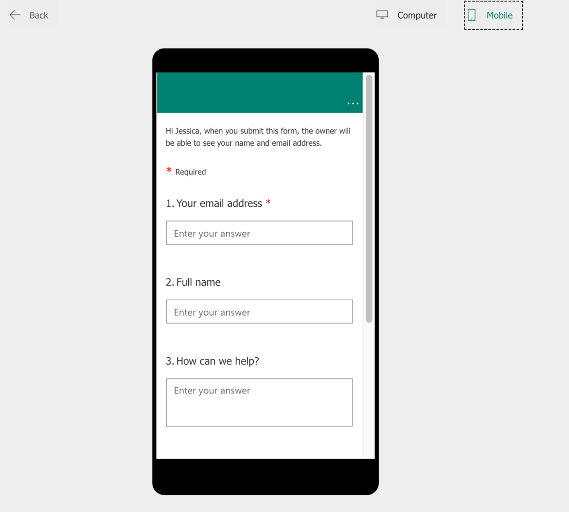 ถ้าเป็นตามคอนเซ็ปต์ที่ผมเสนอนี้ ก่อนอื่นเราจะมาเริ่มสร้างฟอร์ม “Contact Us” หน้าตาประมาณนี้ ด้วย Microsoft Forms กันนะครับ