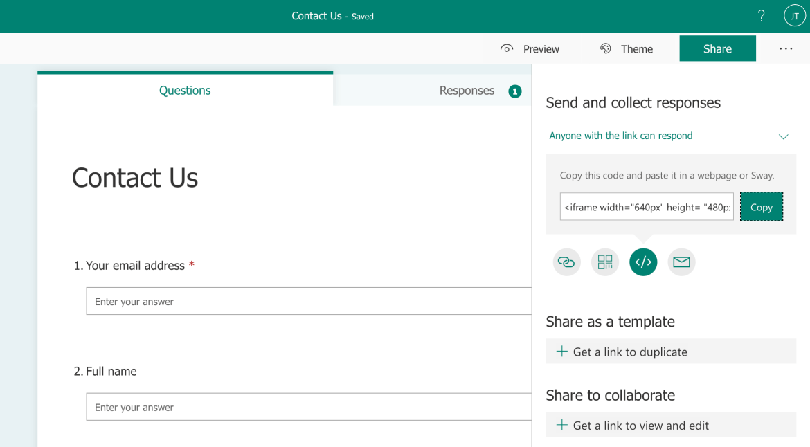 ● คลิกที่ปุ่ม “Share” บน Microsoft Forms