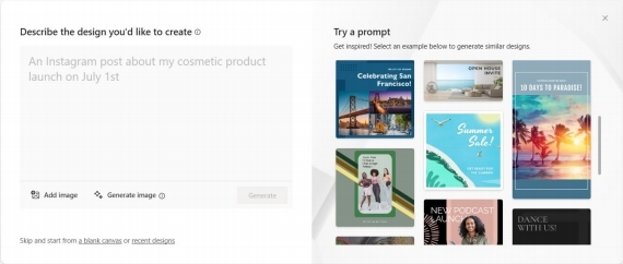 The first prompt it asks is “Describe the design you’d like to create.” This makes it simple