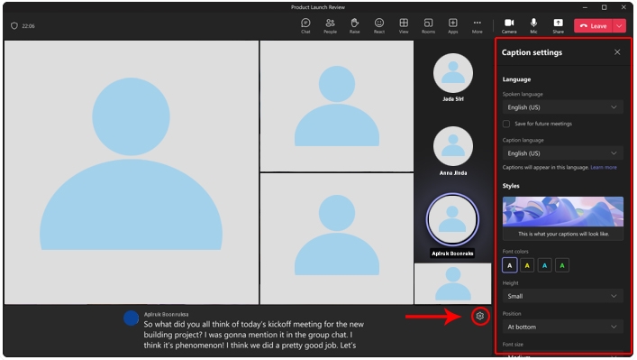 วิธีการดังนี้:สำหรับผู้จัดการประชุม สามารถตั้งค่าภาษาล่วงหน้าได้ เพื่อให้ผู้เข้าร่วมสามารถดูคำบรรยายได้ โดยผู้จัดการประชุมสามารถเลือกได้ 6 ภาษา แต่หากใช้งานแพคเกจ Teams Premium จะเลือกได้ 10 ภาษา จากภาษาต่างๆ ทั้งหมดที่มีมากกว่า 50 ภาษา