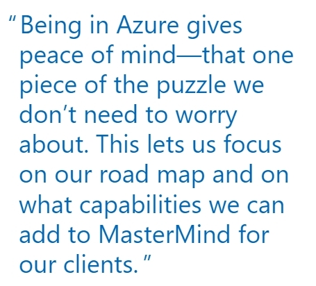 “Being in Azure gives peace of mind—that one piece of the puzzle we don’t need to worry about. This lets us focus on our road map and on what capabilities we can add to MasterMind for our clients,” says Gopal Nagappan, Chief Technology Officer at Mastery.