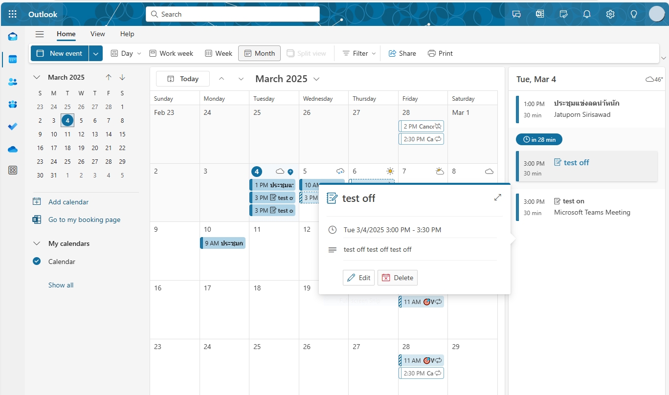 เข้า Outlook --> Calendar --> เลือกตารางการประชุม meeting กด Edit