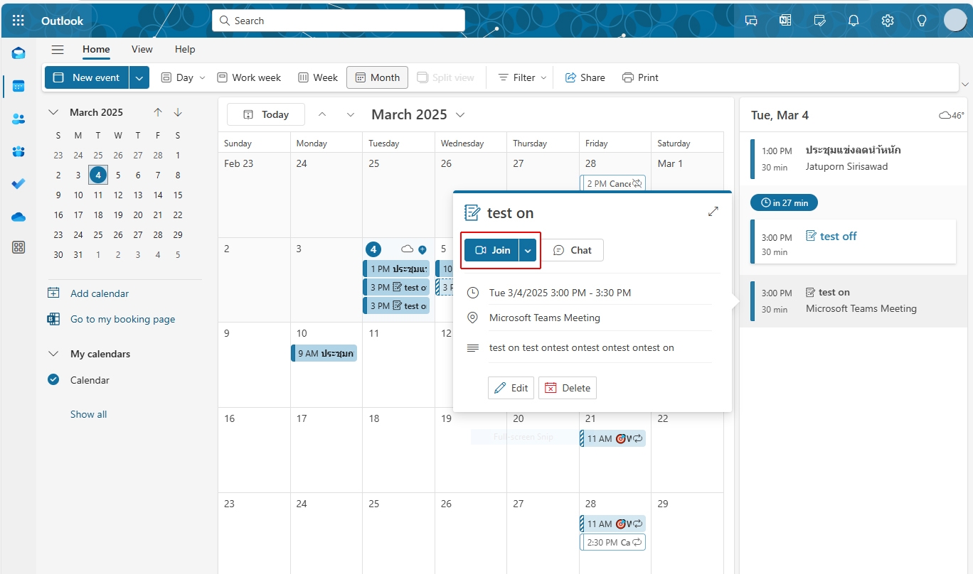 รายละเอียดการเข้าร่วมการประชุมใน Teams จะถูกเพิ่มลงในคำเชิญเข้าร่วมประชุมโดยอัตโนมัติหลังจากคลิกส่งแล้ว