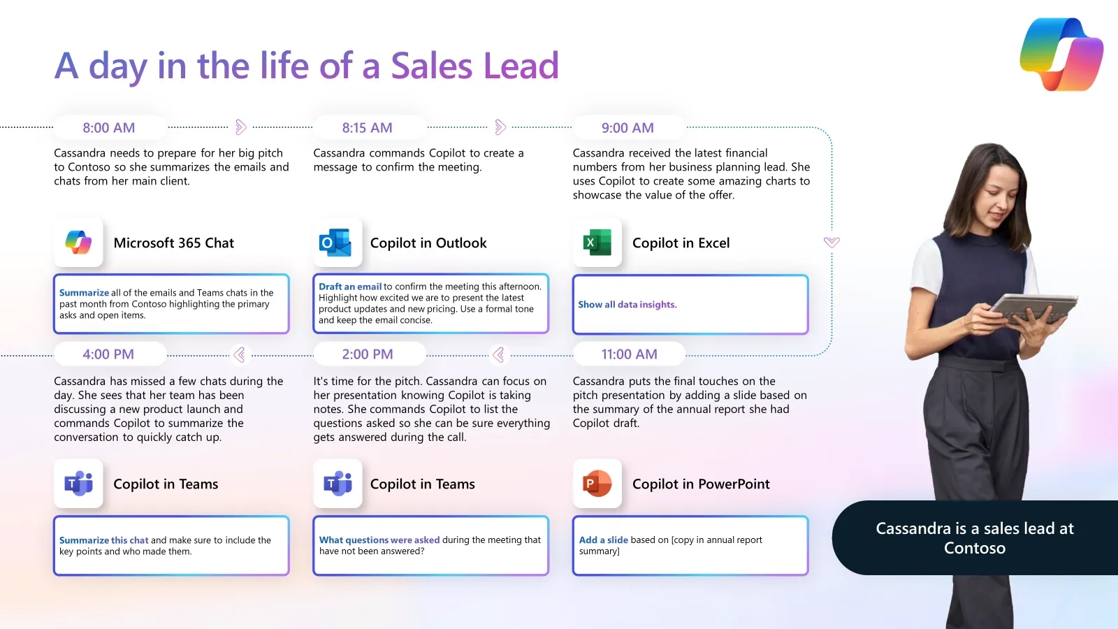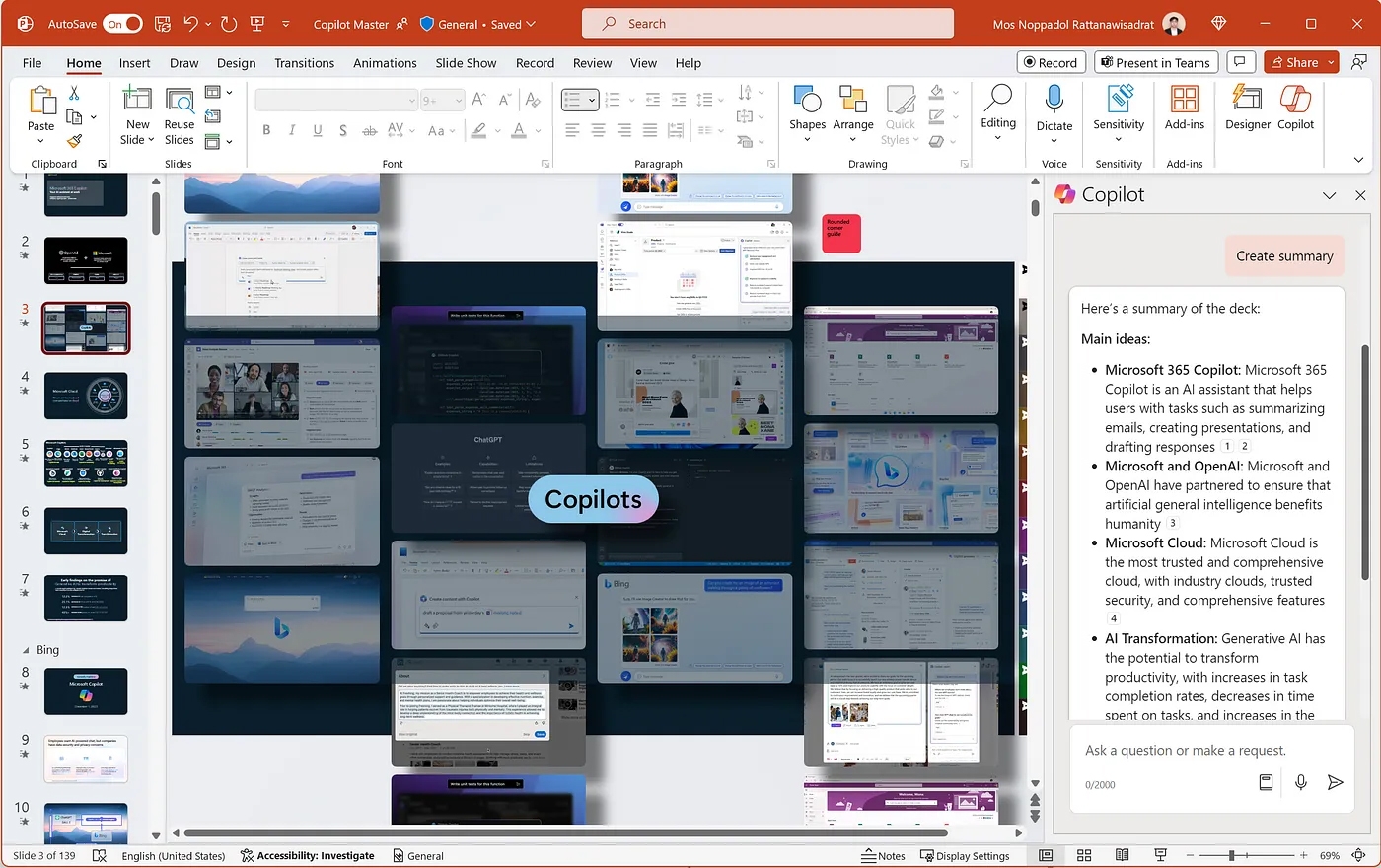 Copilot จะเข้ามาช่วยเพิ่ม Productivity ในการทำงาน ลดระยะเวลาในการเรียนรู้และค้นหาข้อมูลทั้งภายนอกและภายในบริษัท และยังเปิดโอกาสใหม่ๆในการเชื่อมโยงข้อมูลที่มีมหาศาลและกระจัดกระจายกันอยู่หลายๆที่ ซึ่งทั้งหมดยังตั้งอยู่บนความปลอดภัย