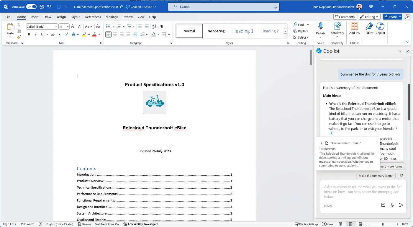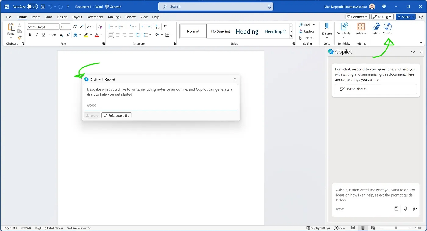 Copilot ใน word จะช่วยเราเขียน แก้ไข สรุป และถามตอบข้อมูลในเอกสารได้