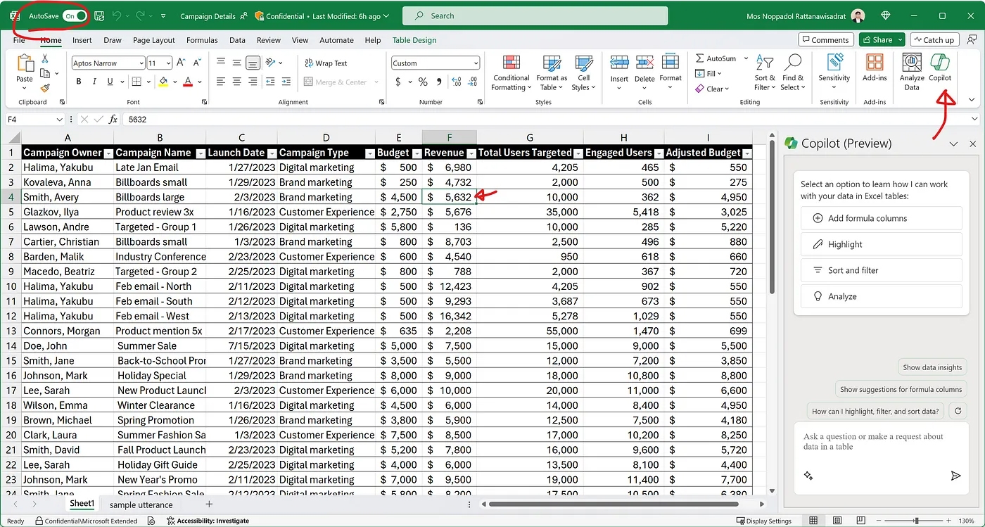 สิ่งที่ Excel Copilot ทำได้ดีมากๆคือ ทำให้คนที่ใช้ Excel ไม่คล่อง สามารถใช้ excel ได้อย่างมีประสิทธิภาพสูงขึ้น ไม่ว่าจะเป็นการช่วยวิเคราะห์ หา Insight ข้อมูล หรือ take action แต่ไม่รู้สูตร