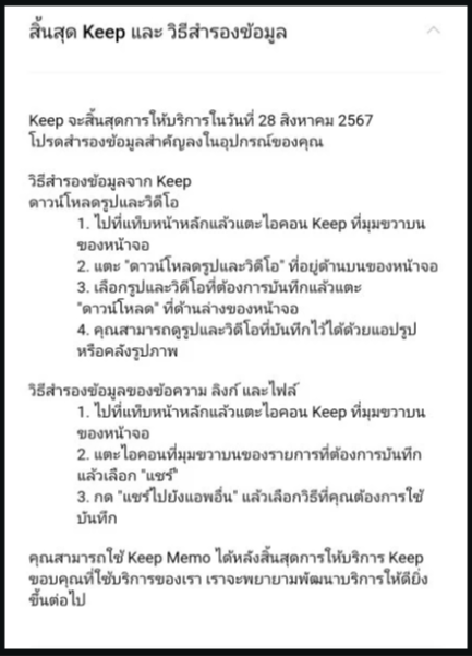 LINE ประกาศเตรียมยกเลิกฟีเจอร์ LINE Keep พร้อมลบไฟล์ทั้งหมดที่เคยเก็บไว้ใน LINE Keep ในวันที่ 28 สิงหาคม 2567 นี้ โดยฟีเจอร์ Keep Memo จะยังใช้งานได้ต่อไป