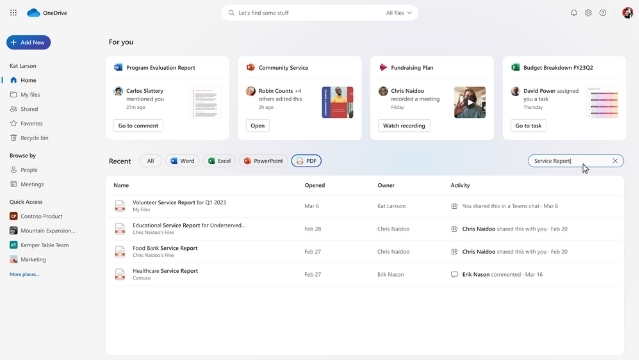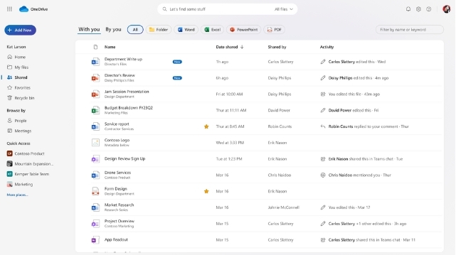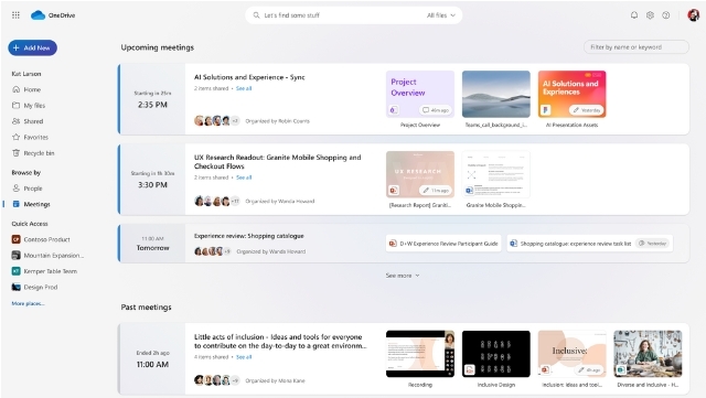 หน้าตาโดยรวมของ OneDrive ตัวใหม่ดูสะอาด เรียบง่ายมากขึ้น เพิ่มตัวกรองประเภทของไฟล์ในทุกหน้าจอ, เพิ่มฟีเจอร์ช็อตคัตของไฟล์แบบเดียวกับระบบจัดการไฟล์ของวินโดวส์, สามารถทำงานออฟไลน์ได้แม้อยู่ในเบราว์เซอร์, เพิ่มตัวเลือกว่าจะเปิดไฟล์ในเบราว์เซอร์หรือในแอพเดสก์ท็อป (Open in App) และใช้ AI ช่วยคัดกรองไฟล์ที่ใช้บ่อยมานำเสนอ