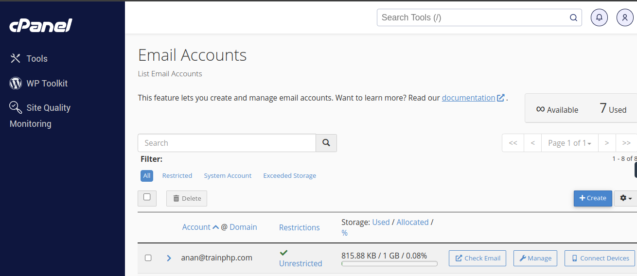 3. หมวด Email คลิกที่เมนู Email Accounts เพื่อเข้าสู่ขั้นตอนการสร้างบัญชีอีเมล