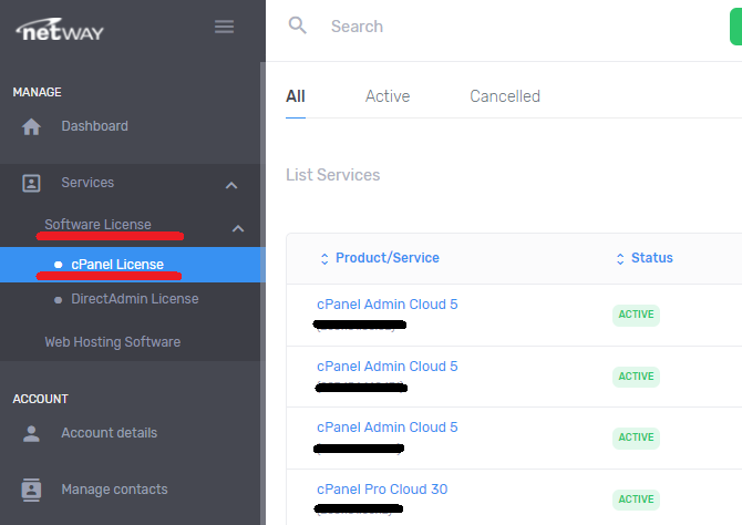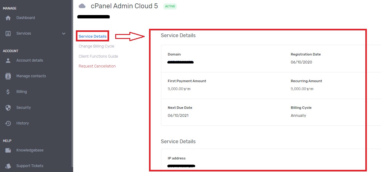 Service Details ส่วนแสดงข้อมูล License เช่น IP Address , ราคา วันหมดอายุเป็นต้น