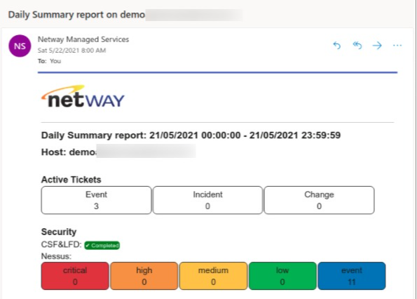 จาก Report หากการสแกนช่องโหว่ตรวจสอบพบจะมี Incident Alert and Notification ให้ทางเจ้าหน้าที่ของเน็ตเวย์และลูกค้าทราบข้อมูล ซึ่งมีความถี่ในการตรวจสอบช่องโหว่ในระดับ Daily เลยทีเดียว ซึ่งทางเจ้าหน้าที่ของเน็ตเวย์ก็จะดำเนินการตรวจสอบ แนะนำ และแก้ไขช่องโหว่ที่ตรวจพบให้กับทางลูกค้า เพื่อให้ระบบเซิร์ฟเวอร์ เว็บไซต์ หรือ Application ของลูกค้ามีความปลอดภัยสูงสุดไม่มีช่องโหว่ให้ถูกเจาะ หรือเป็นปัญหาในการเข้ากระบวนการ Audit