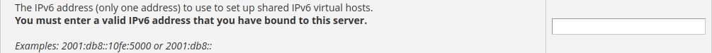 2. ทำการตั้งค่า Shared IPv6 virtual hosts ใน WHM »Server Configuration »Basic WebHost Manager® Setup โดย นำค่า IPv6 ใส่ในช่องตามภาพข้างล่าง