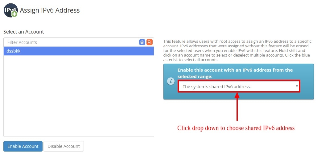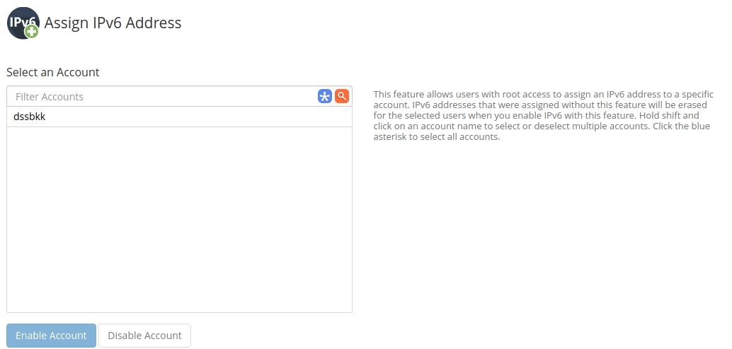 2. Go to WHM » IP Functions » Assign IPv6 Address
