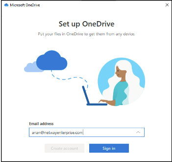 การตั้งค่าผ่าน OneDrive Application ตั้งแต่เริ่มต้น โดยค้นหาโปรแกรม OneDrive บนเครื่อง ซึ่งหลังจากเปิดโปรแกรม ระบบจะให้ใส่ Email account