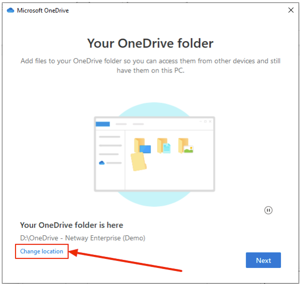 4. จากนั้นกด Next ไปเรื่อยๆ จนสุดขั้นตอน ถือว่าเสร็จสิ้น จากนั้นบนเครื่องที่ใช้งาน จะมี Folder ของ OneDrive ขึ้นมา (โดยสังเกตุจะเป็นชื่อองค์กรที่เข้าใช้งาน)