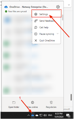 5. การตั้งค่าต่างๆ สามารถคลิกขวาที่ Icon OneDrive ที่มุมขวาล่างของหน้าจอ
