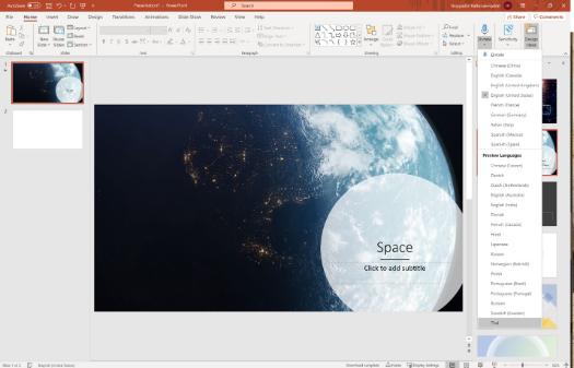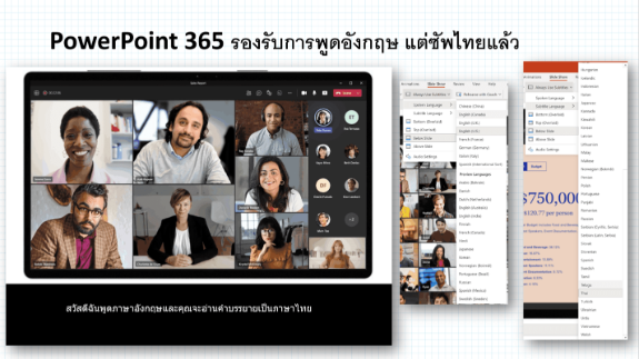 และเช่นเดียวกับ Word 365, ตัว PowerPoint 365 ก็รองรับภาษาไทยในการพูดแทนพิมพ์ เช่นเดียวกัน