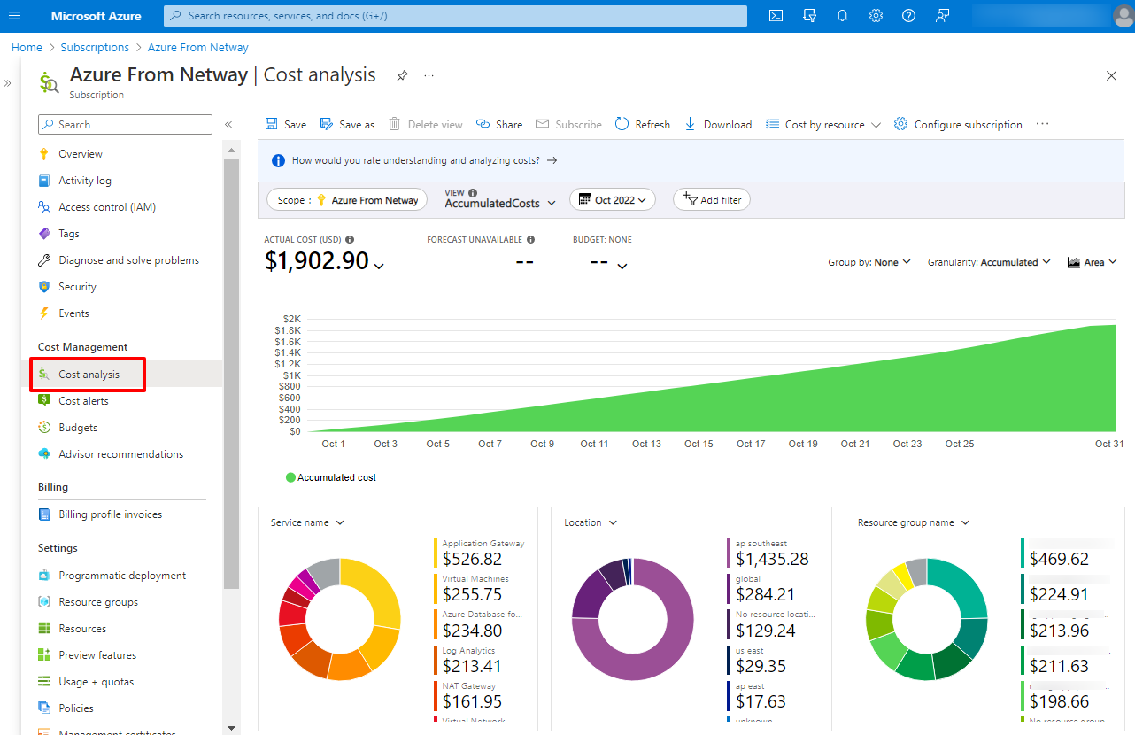 4. ทำการเลือก Cost Analysis จะพบรายละเอียดการใช้งาน Azure ของท่าน