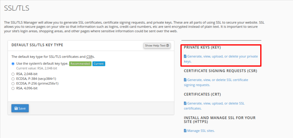 3. ทำการคลิ๊กในส่วน “ Generate, view, upload, or delete your private keys.”