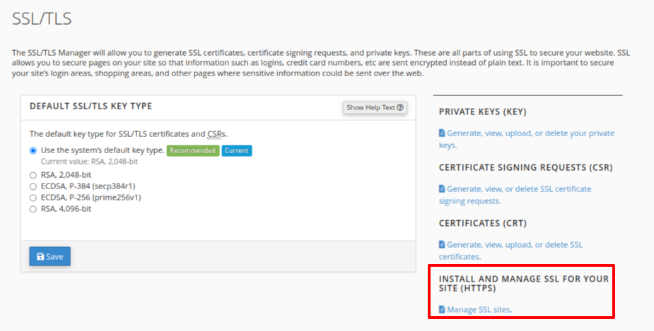 5. ไปที่ Manage SSL sites เพื่อเข้าสู่ขั้นตอนติดตั้ง