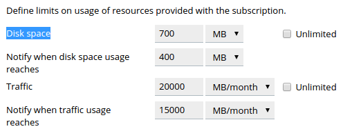 3.ปรับเพิ่มพื้นที่ quota ในส่วนของ Disk space ตามรูป เสร็จแล้วคลิก OK ด้านล่าง