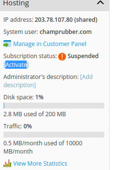 หมายเหตุ: ในกรณีนี้ที่พื้นที่การใช้งานเต็ม Quota ระบบจะ suspended Account ไว้อยู่